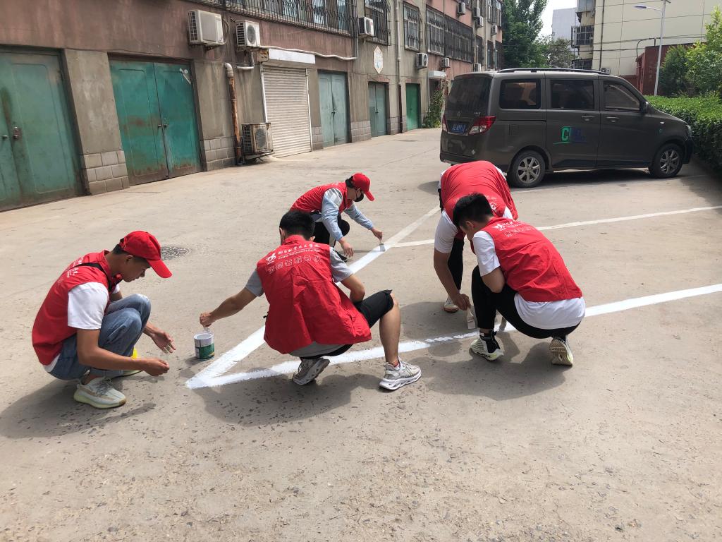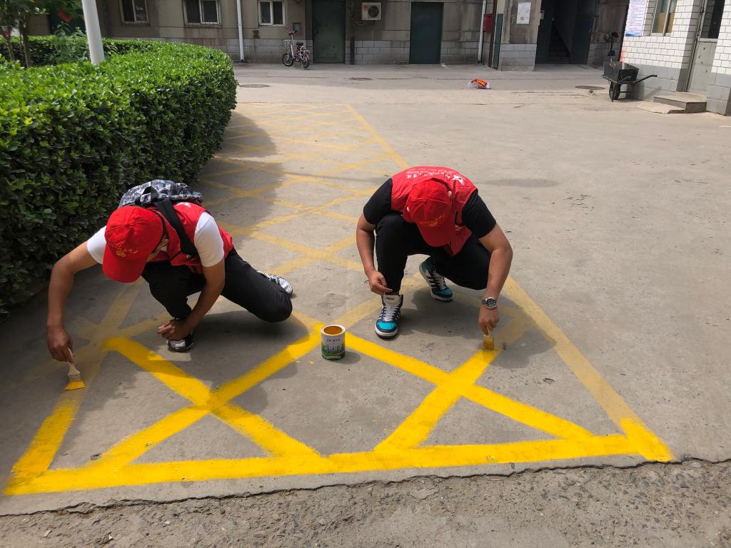 团结苑小区是老小区,院内停车位线和禁停标志线都已模糊不清,为了让居民有一个更好的居住环境,建筑工程系志愿者们精心分工,手拿刷子细致粉刷标志线。经过一上午的忙碌,小区地面的标志线焕然一新。他们还对小区卫生进行了集中清理,指导居民进行垃圾分类。
