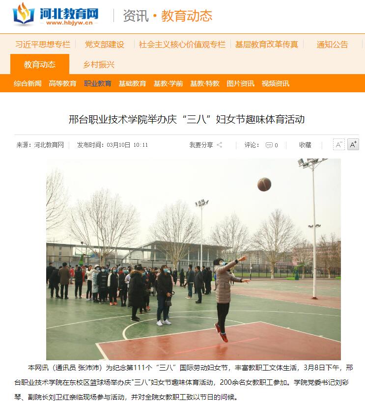 此次“三八”妇女节活动取得了圆满成功,既能锻炼身体,又促进了教职工之间的沟通和交流,进一步增强了集体凝聚力,让女教职工们过了一个轻松愉快而有意义的“三八”妇女节。(来源 河北教育网)