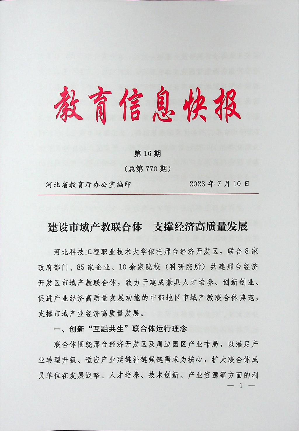 教育信息快报:建设市域产教联合体 支撑经济高质量发展