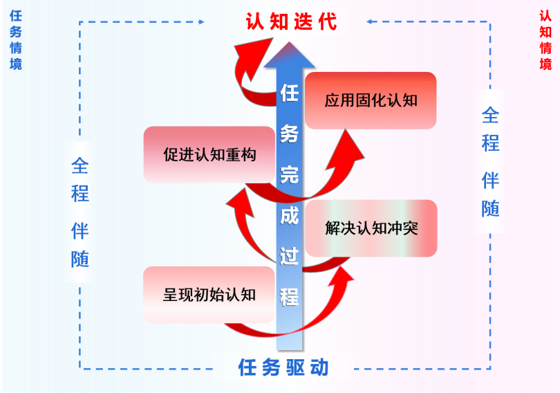 该体系创新实践“任务驱动、认知迭代”培训模式,基于成人学习理论和认知学徒制,让参训教师带着实际任务参加培训,边学习方法边完成任务。培训过程中按小组配备培训师,提供“全程伴随”指导,创设“呈现初始认知-解决认知冲突-促进认知重构-应用固化认知”的认知迭代情境,促进教师对所学系统方法的深层次理解和实践应用。
