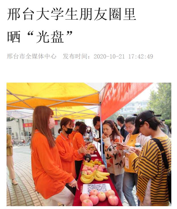 一粥一饭,当思来之不易。10月20日至21日,邢台职业技术学院开展纪念世界粮食日暨光盘行动周活动,号召广大师生利用微博、微信等媒介广泛参与光盘行动。