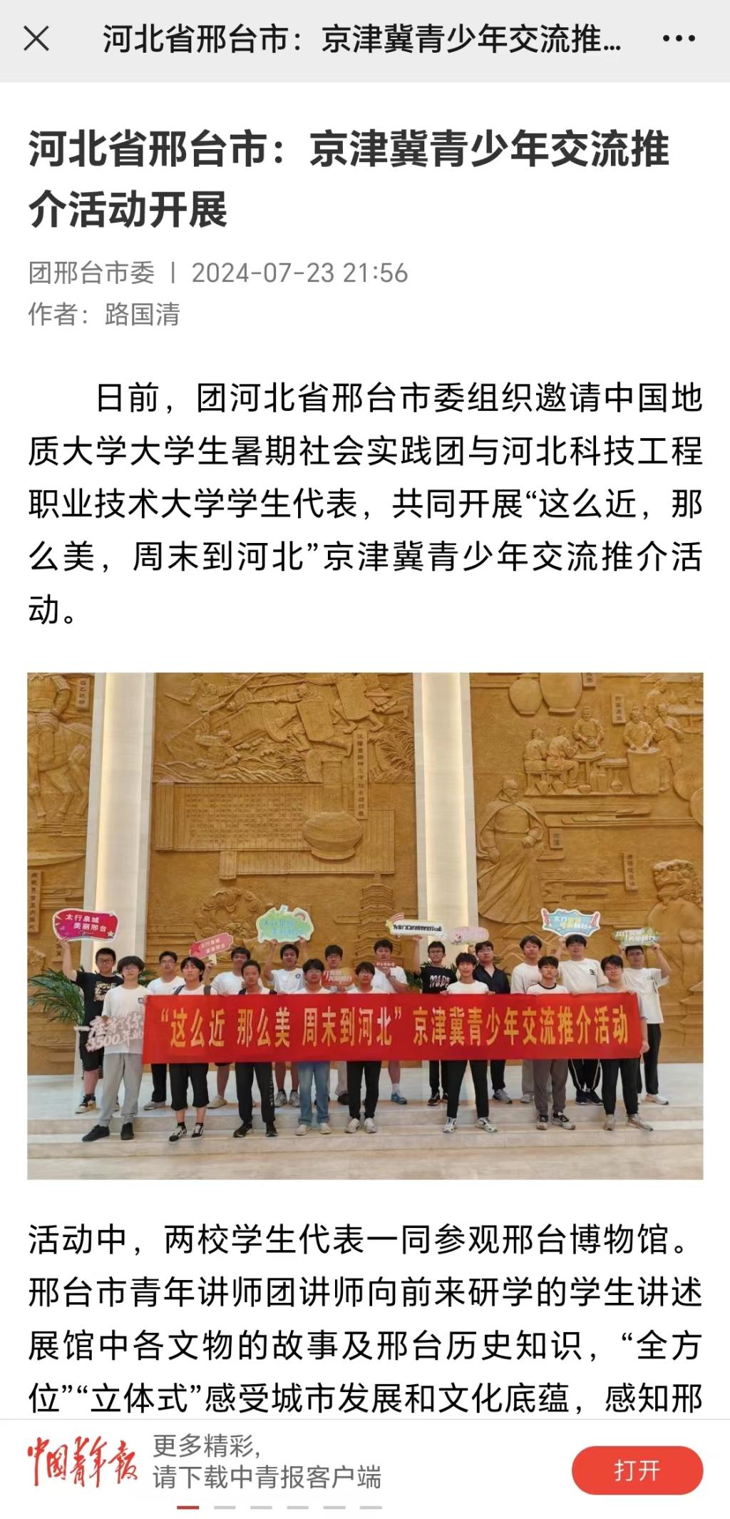 日前,团河北省邢台市委组织邀请中国地质大学大学生暑期社会实践团与365上市公司官网学生代表,共同开展“这么近,那么美,周末到河北”京津冀青少年交流推介活动。