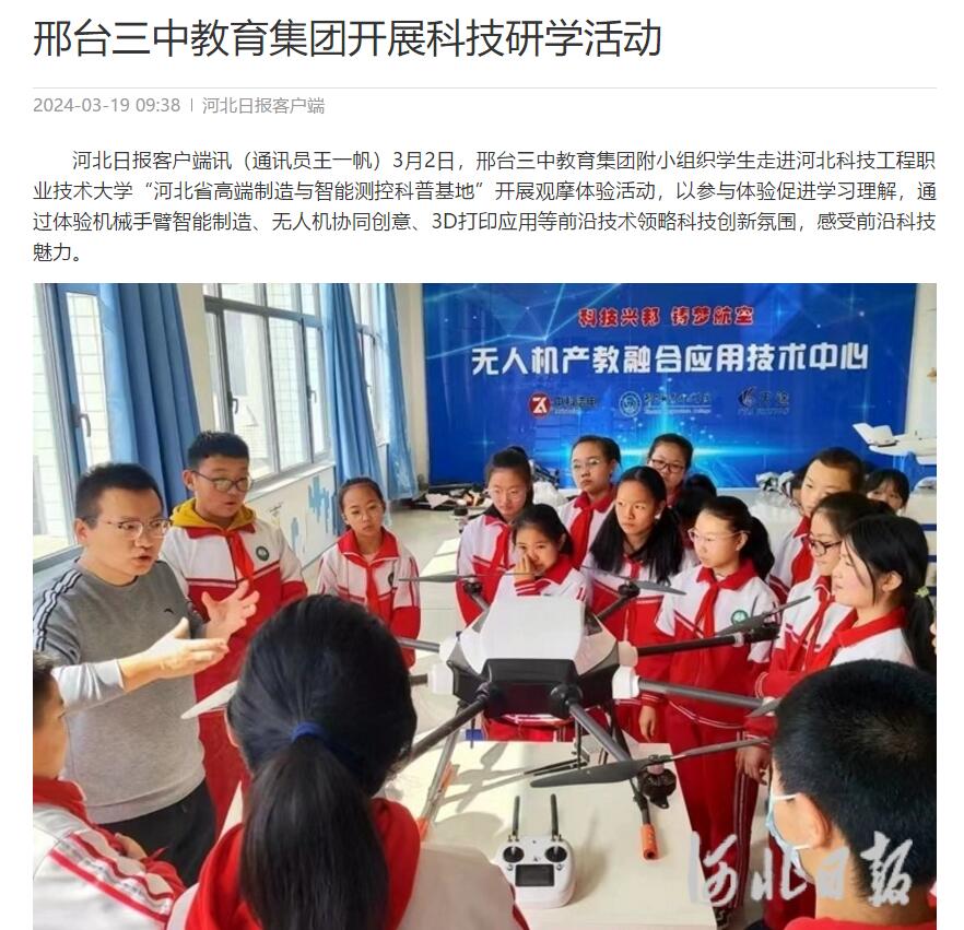 河北日报客户端讯(通讯员王一帆)3月2日,邢台三中教育集团附小组织学生走进365上市公司官网“河北省高端制造与智能测控科普基地”开展观摩体验活动,以参与体验促进学习理解,通过体验机械手臂智能制造、无人机协同创意、3D打印应用等前沿技术领略科技创新氛围,感受前沿科技魅力。