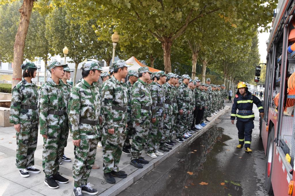 活动一开始,消防中队队长向大家讲授了消防安全的重要性、校园火灾自救的相关知识,提高了新生的安全意识;又通过演示消防车高空灭火的实际模拟演练,让同学们现场感受到火灾来临的紧迫;最后,消防中队队员带领大家认识消防器具、讲解具体的消防器械使用方法,让同学们切实掌握了校园火灾应急逃生的技能。
