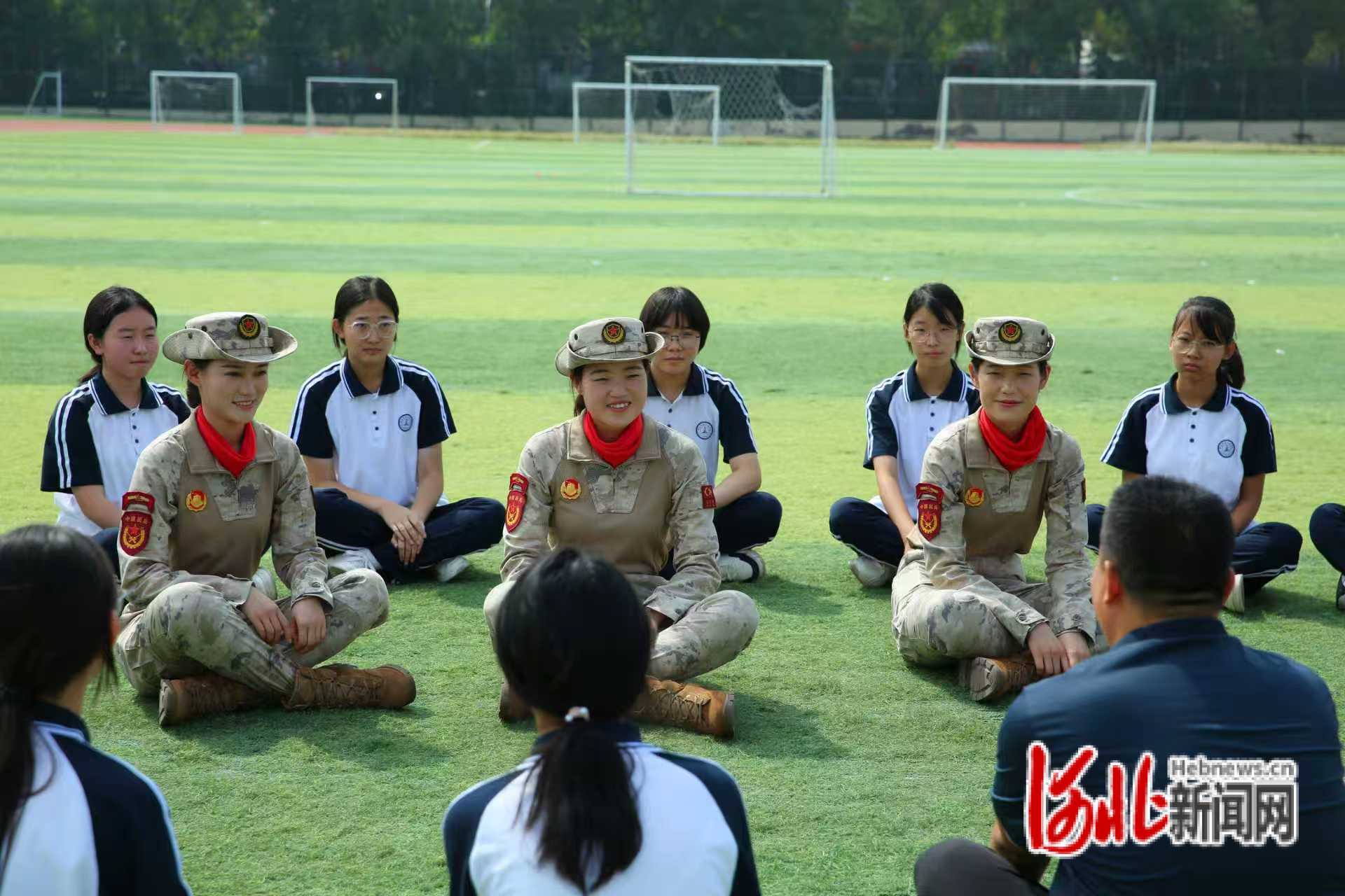 在邢台市第十九中学北校区,受阅女民兵分享参加阅兵的历程。