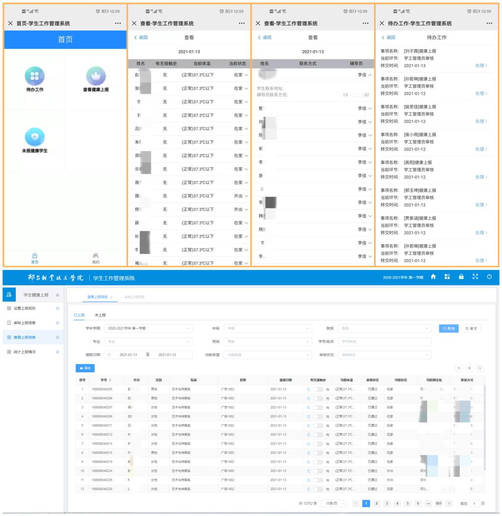 疫情发生后,第一时间安排广大辅导员老师、学生骨干,利用微信、短信、电话精心细致地摸排全院学生健康状况,并认真落实“日报告”“零报告”制度,每日“一对一”、“点对点”联系学生,做到摸排情况不留死角,统计信息全面精准,学生情况掌握透彻,健康监测真实可靠,包联对接无缝到位,反馈报告及时清晰,筑牢了学生疫情防控高墙。同时,及时传达学院相关精神要求,引导学生不信谣、不传谣、不造谣。