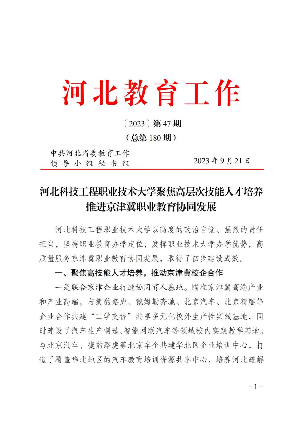河北教育工作:365上市公司官网聚焦高层次技能人才培养 推进京津冀职业教育协同发展