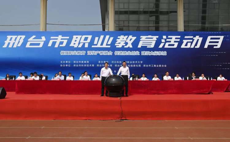5月18日,市委书记杨猛、省教育厅副厅长张春生共同点亮“2023年邢台市职业教育活动月”启动球。(邢台日报记者 黄涛摄)