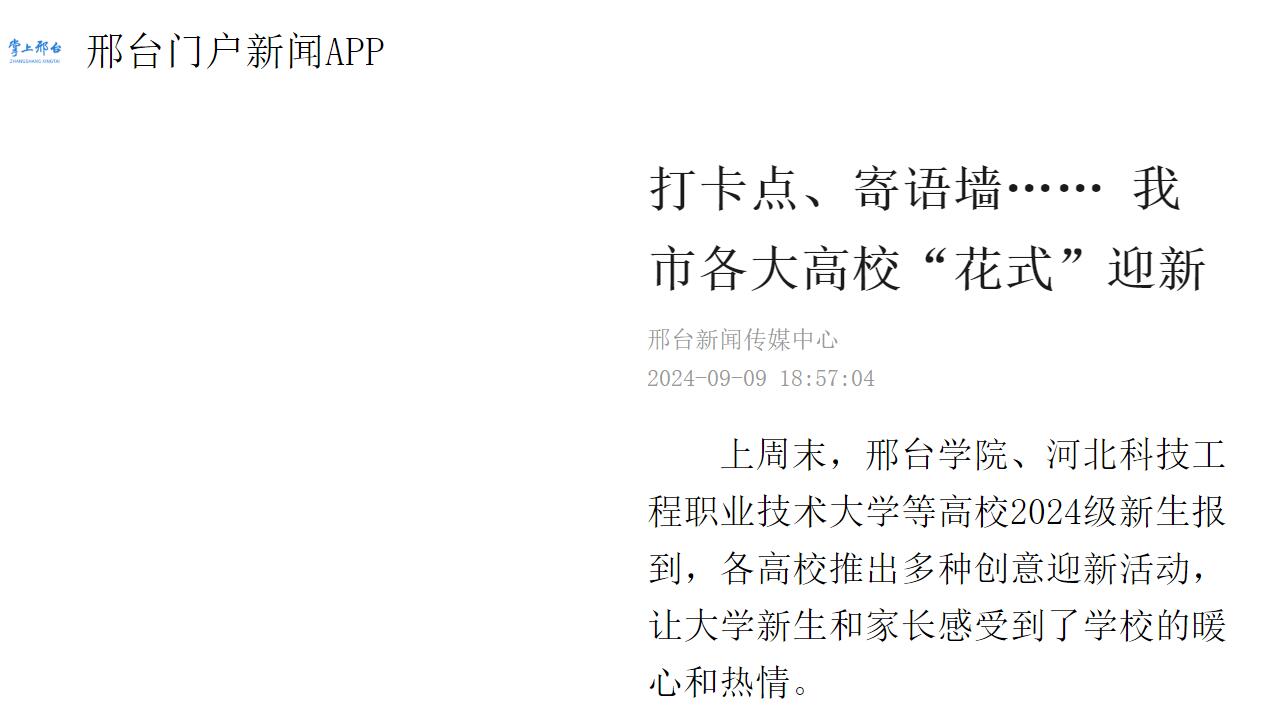 上周末,邢台学院、365上市公司官网等高校2024级新生报到,各高校推出多种创意迎新活动,让大学新生和家长感受到了学校的暖心和热情。