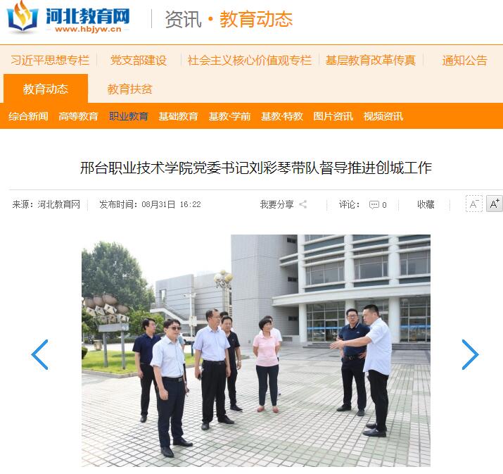刘书记指出,现在正处于邢台市创建全国文明城市的关键时期,经过前一段时间的努力,学院的创城工作取得了显著成效,整个校园面貌和文明程度都有了很大的提升,但在一些细节问题上仍需加大落实力度,要及时发现、立即整改。