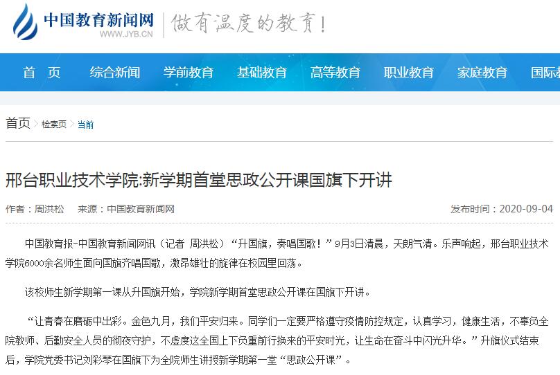 邢台职业技术学院:新学期首堂思政公开课国旗下开讲