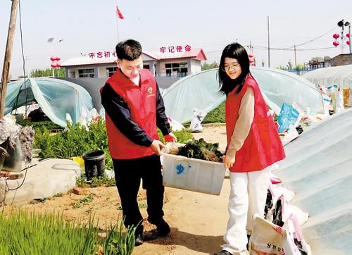 5月10日,团滦州市委组织志愿者到南新庄子村,帮助当地老人采摘、搬运红薯秧。 团滦州市委供图