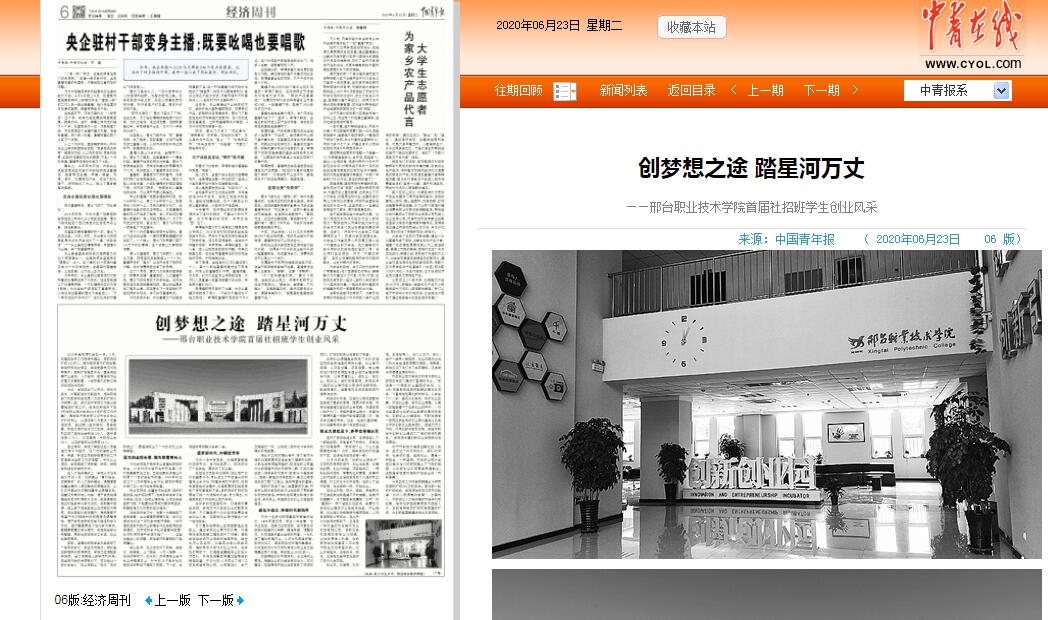 邢台职业技术学院为所有怀揣创业梦想的学生们提供了富饶的沃土。“学院是一个拥有创业基因的学校,从1991年最早承担高职教育改革试点任务,一直走在改革创新的前沿。从学生们一入学,参观众创空间、聆听创业故事、对话创业者、学习创业课程,从第一刻起就播下了创新创业的种子……作为全国深化创新创业教育改革示范高校、创新创业50强高校,邢职院拥有一园两区多空间的创业孵化基地以及高水平的创新创业教学团队,技能大师工作坊、协同创新守敬科坊等,都给邢职学子创新创业提供了广阔的空间和舞台。”学院院长暨创新创业学院院长马东霄说。