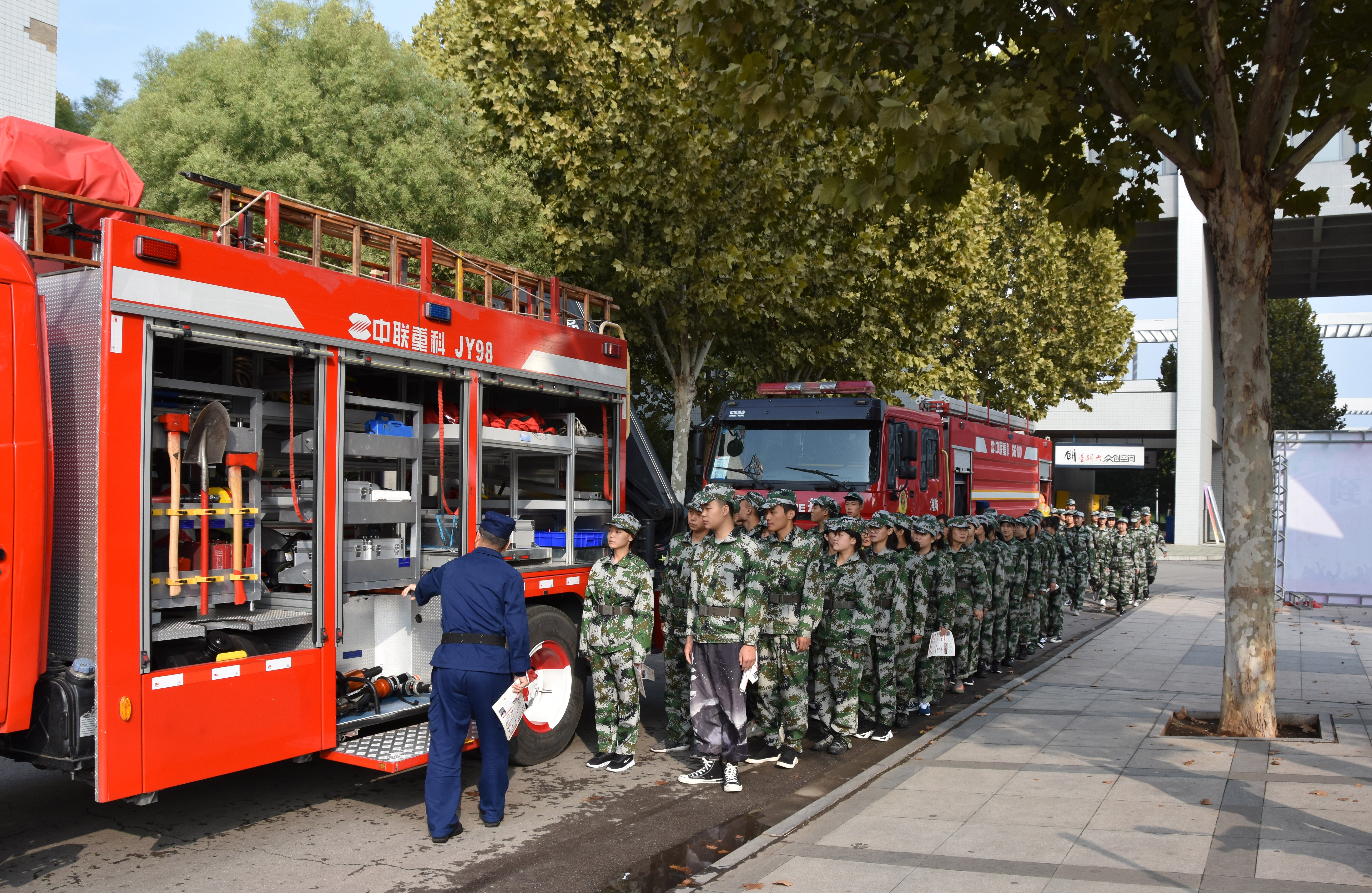 活动一开始,消防中队队长向大家讲授了消防安全的重要性、校园火灾自救的相关知识,提高了新生的安全意识;又通过演示消防车高空灭火的实际模拟演练,让同学们现场感受到火灾来临的紧迫;最后,消防中队队员带领大家认识消防器具、讲解具体的消防器械使用方法,让同学们切实掌握了校园火灾应急逃生的技能。