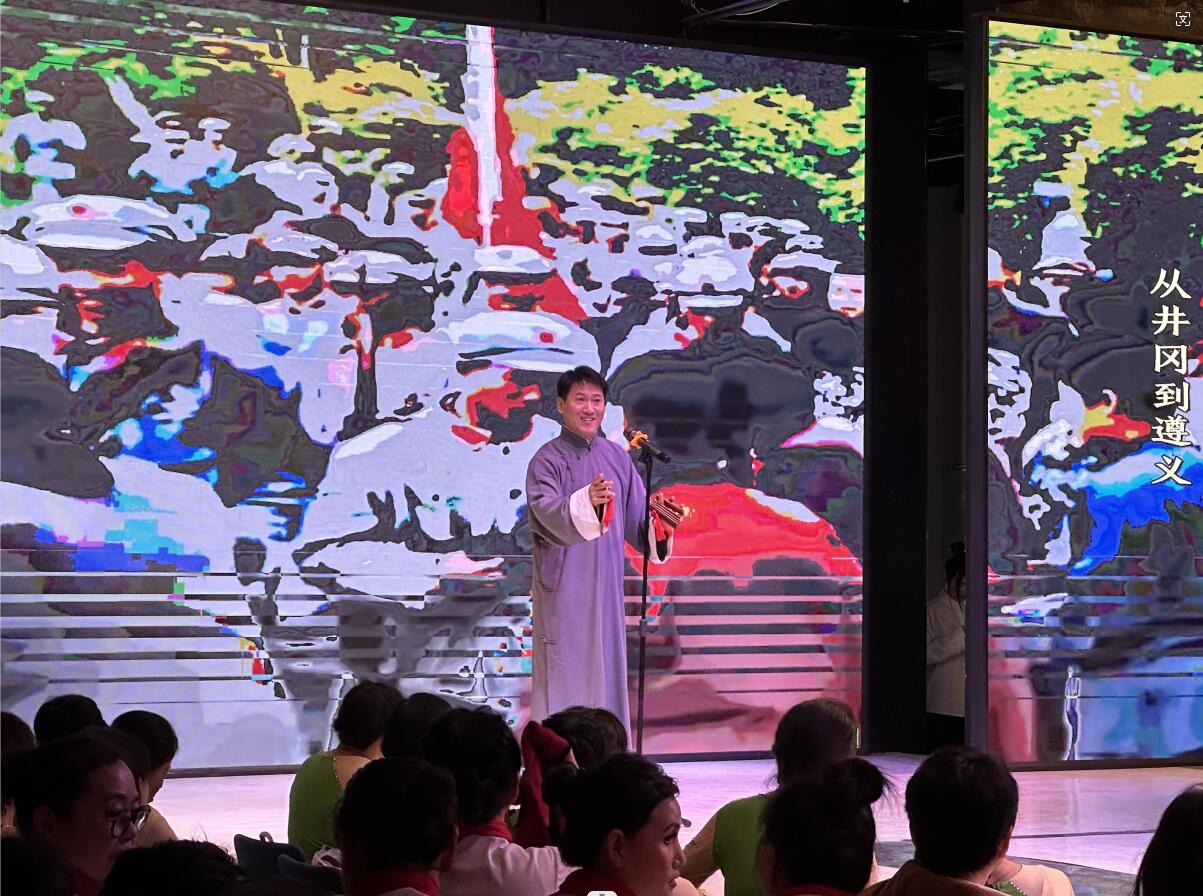 邢台市曲协副主席刘中杰老师带来快板表演《天安门前看升旗》,此曲表达了对祖国的热爱和崇敬之情;邢台市曲协副主席、民建爱心艺术团团长、京东大鼓其字辈传承人张海霞老师和她的团队为大家表演京东大鼓《见了你们格外亲》;365官网学生带来了舞蹈《诗画中国》、合唱《我和我的祖国》、话剧《半条军被》等,学生们用歌舞等形式将我们带入那段时光,他们将爱国之情换为音符,表达个人对祖国不变的情愫。还有萨克斯演奏、独唱等,整场表演精彩纷呈,令观众热血沸腾。