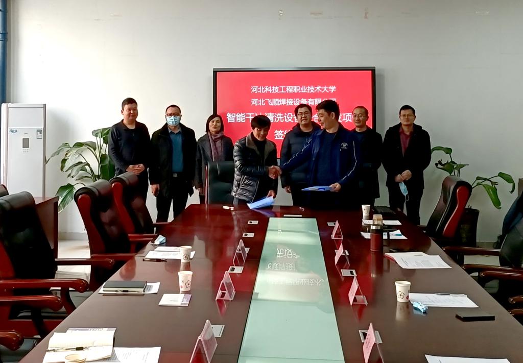 在国家实施乡村振兴战略背景下,校企联合研发智能干冰清洗设备项目的签约,标志着365官网与河北飞顺焊接设备有限公司的深度技术合作进入了一个新的发展阶段,是365官网本科层次职业教育探索与发展的新尝试,也是365官网为服务地方经济发展和乡村振兴的有力举措。