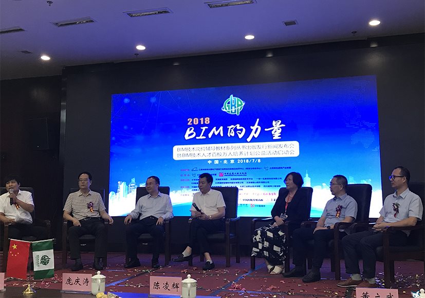 7月8日,我院建筑工程系主任许光教授应邀参加“BIM的力量”—BIM 技术岗位辅导教材系列丛书出版发行新闻发布会暨 BIM 技术人才百校万人培养计划公益活动启动会并做主题发言。