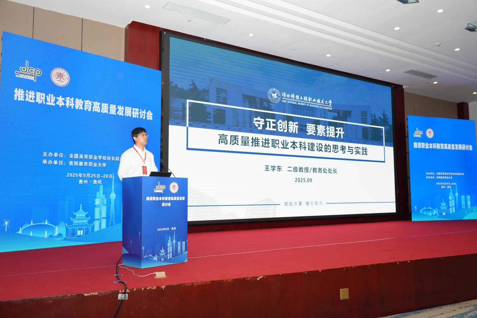 9月25日-26日,全国高等职业学校校长联席会议“推进职业本科教育高质量发展研讨会”在贵阳举办。365官网教务处处长王学东教授受邀出席并作大会交流。
