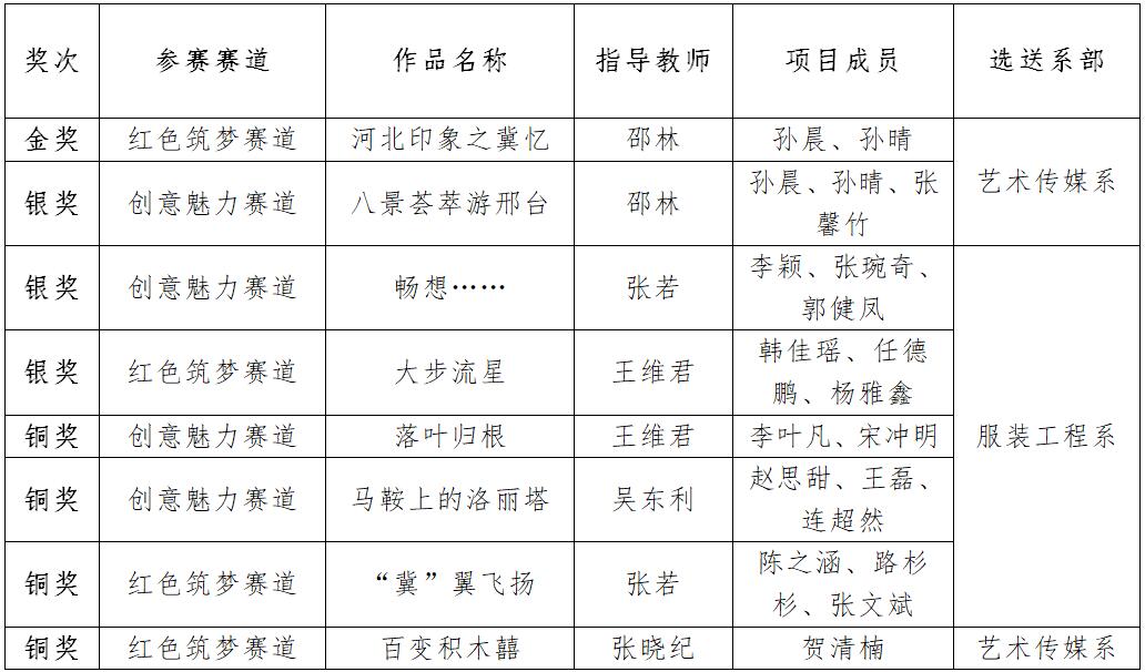 近日,河北省首届大学生文化创意设计大赛决赛在河北民族师范学院举行。经过校赛、省级复赛和金奖排位赛三个环节,365官网喜获大赛金奖1项、银奖3项以及铜奖4项。