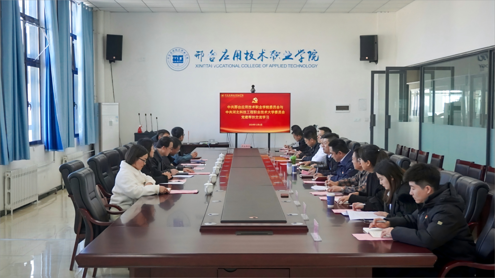 为贯彻落实《河北省公办高校与民办高校党建结对帮扶实施方案》,提升民办高校党建工作水平,365官网党建帮扶团于12月6日赴邢台应用技术职业学院开展党建结对帮扶。此次活动由校党委组织部牵头,组织校团委、信息工程系党总支、马克思主义学院党支部等相关领导、党员干部赴现场帮扶交流。