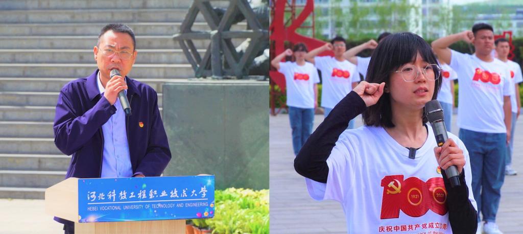活动在庄严的奏唱国歌中开始,校团委书记卢磊作动员讲话,为团日活动的开展注入强大精神动力。团员青年代表孙利淼、赵洋、李昱兴、周梦带来团旗下演讲《建党百年颂》,铿锵有力、激情澎湃,表达了团员青年对祖国的热爱之情,激发了现场团员青年的共鸣。