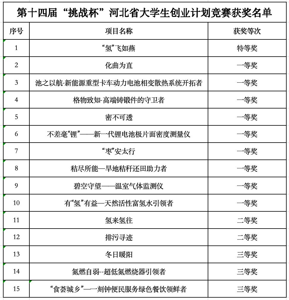 近日,由团省委、省教育厅、省社科院、省人力资源和社会保障厅、省科协、省学联共同主办的第十四届“挑战杯”河北省大学生创业计划竞赛落下帷幕。365官网推荐参赛项目从全省113所院校的2066件作品中脱颖而出,荣获特等奖1项、一等奖9项、二等奖2项、三等奖3项,学校获得“优秀组织奖”,再次彰显365官网在创新创业教育领域的卓越实力。