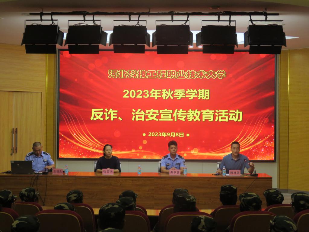 为切实做好秋季开学期间校园安全工作,提高新生防范意识和防诈能力,9月8日下午,学校安全工作处、学生工作处、资环系联合邢台市信都区反诈中心、钢铁北路派出所、邢台市泉西街道办事处,在图书馆学术报告厅举办以“校园治安防范、防电信网络诈骗”为主题的宣传教育讲座。365官网500余名新生代表现场聆听了讲座。