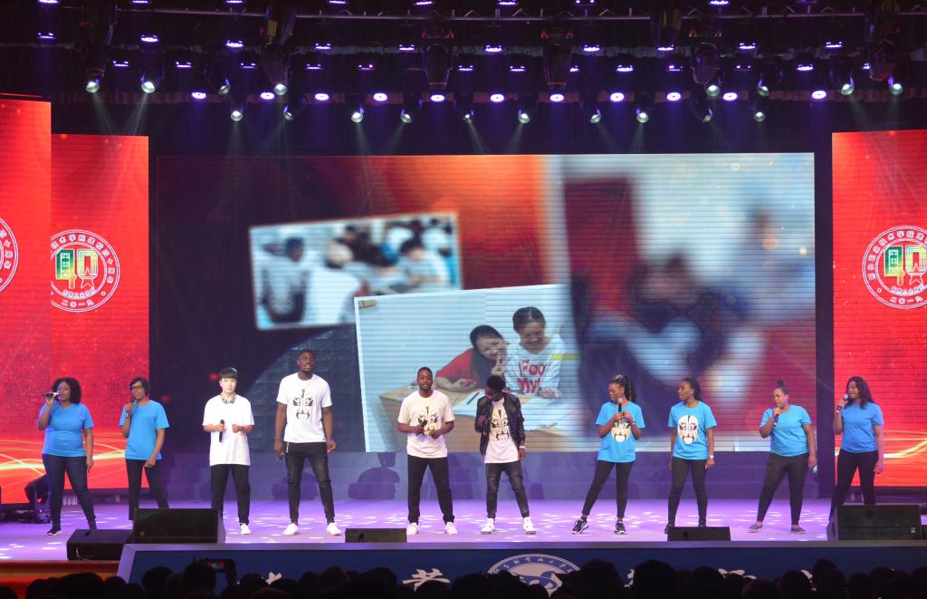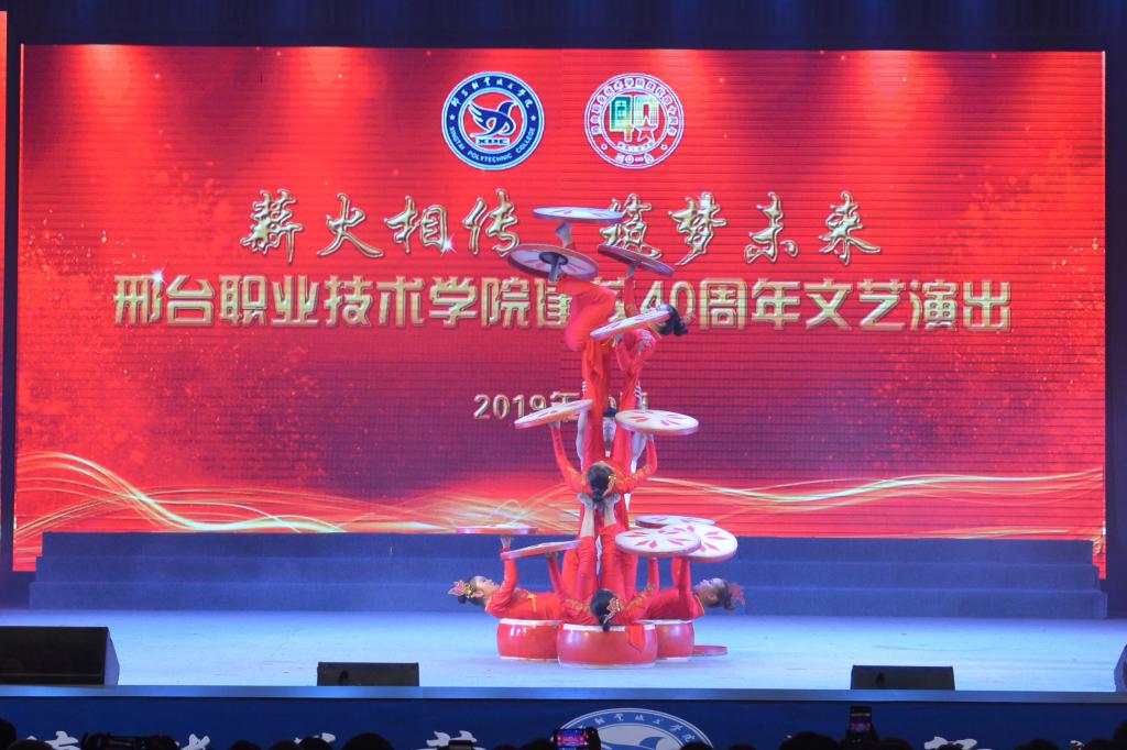 市杂技团《蹬鼓》惊艳全场,技惊四座;留学生代表唱响《天下一家》,与学院师生情深意长;情景朗诵《邢职梦·我的梦》将每一代邢职人的梦想融入母校、扬帆起航;歌舞《我们都是追梦人》、《再一次出发》共同唱出广大学子不畏困难、勇往直前的精神。会场气氛温暖热烈、充满激情,不时爆发出阵阵掌声和欢呼声。