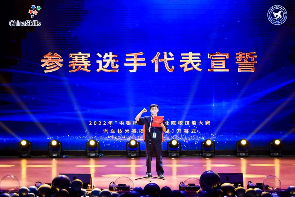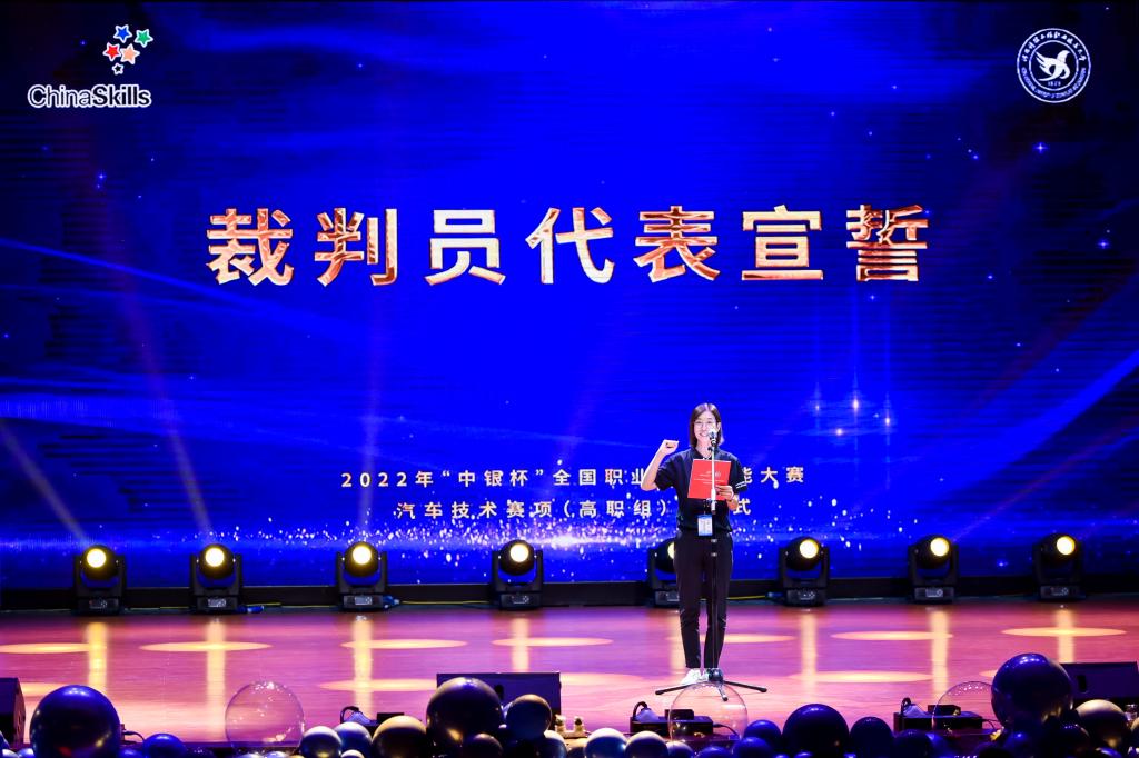 在热烈的掌声中,领导上台共同推杆启动汽车元素特效,2022年全国职业院校技能大赛高职组汽车技术赛项正式开赛!歌舞节目《奋斗吧中国》,预祝所有参赛选手取得优异成绩。