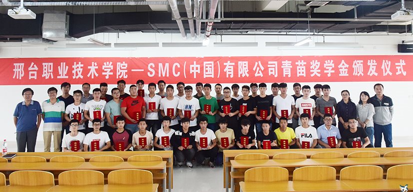 SMC(中国)有限公司青苗奖学金是由SMC公司提供,获奖的40名学生在机电系和SMC公司工学交替实习的学生中评出。本次颁奖仪式正面的宣传引导广大学子要好好学习,用勤奋努力去书写自己的大学篇章。