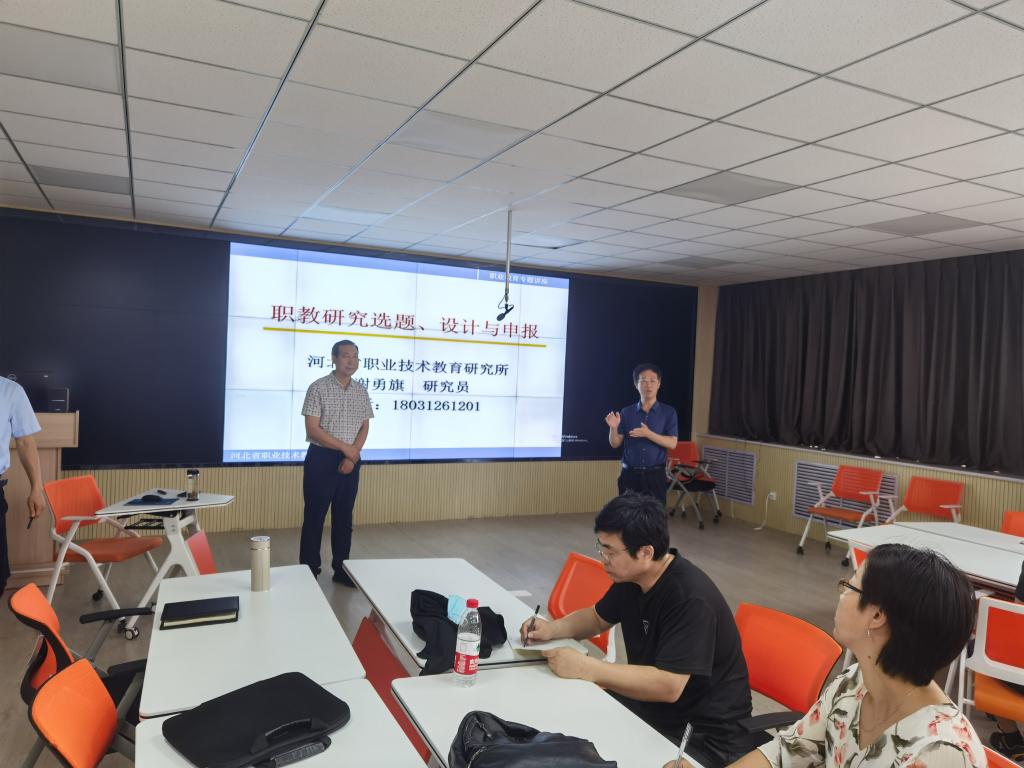 开班仪式由高职研究所所长鲍东杰主持,邀请省职业技术教育研究所副所长、博士生导师谢勇旗教授主讲。谢教授以教育科学研究的概念及规划分类为切入点,围绕职教研究选题、设计与申报等内容进行了重点讲解,并对365官网教改教研制度和文化建设提出了宝贵建议。同时,谢所长还对365官网教师申报的本科职教课题进行了针对性的现场指导和答疑。
