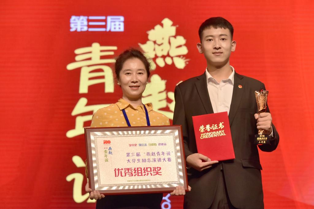 近日,由共青团河北省委主办的“学党史 强信念 守初心 担使命”河北省第三届“燕赵青年说”大学生励志演讲比赛在唐山师范学院落幕。365官网汽车工程系刘海龙同学经过省级初赛、复赛的激烈角逐,从80余名参赛选手中脱颖而出,与其他院校12名选手入围总决赛,最终夺得大赛三等奖,365官网获得优秀组织奖。