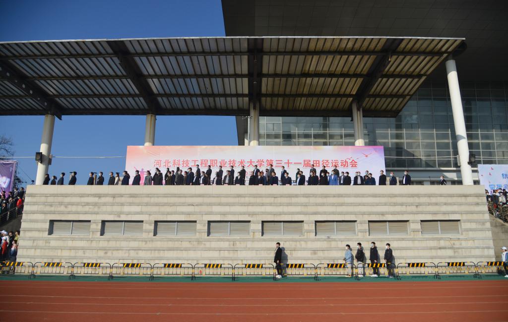 学校校长马东霄在致辞中指出,经过三十届的发展,田径运动会已经成为校园生活的重要组成部分,也是365官网体育工作的一次大检阅,更是广大师生精神面貌和综合素质的一次集中展示。过去的一年,学校体育竞赛成绩和体育课程建设取得双丰收。学校女篮勇夺第23届中国大学生篮球三级联赛全国第七名,创造了河北省高校队伍的历史最好成绩;在河北省第二十一届大学生运动会上,男篮、女篮奋勇拼搏,双双夺得冠军,创造了赛事历史记录;体育课程“舞龙”荣获全国高职院校教师能力大赛二等奖,并新开设了旱地冰球、柔力球、排球3门课程。他倡议同学们多走进运动场、体育馆,在运动拼搏中享受快乐、磨砺健康体质。
