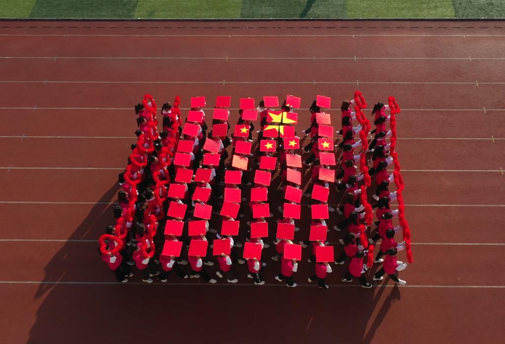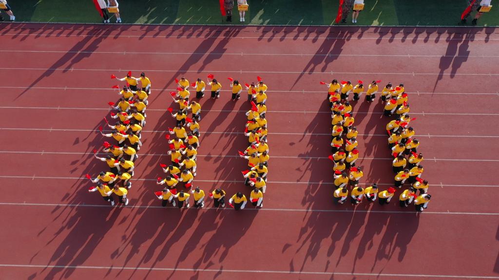 开幕式上,同学们身着各系特色服装,在《运动员进行曲》的铿锵乐声中,各代表队队员在主席台前有序地变换队形,“1921”、“2021”字样轮廓清晰地呈现,鲜红的党旗和“100”字样交相辉映,舞蹈《万疆》刚柔并济、婉转流畅,鲜花、旗帜迎风招展,现场成了一片沸腾的海洋。田径场内,秋风渐起,但阳光和煦,各代表队分列于操场之上,激情洋溢,活力十足。激昂的国歌中,国旗与校旗缓缓升起,随风飘扬。