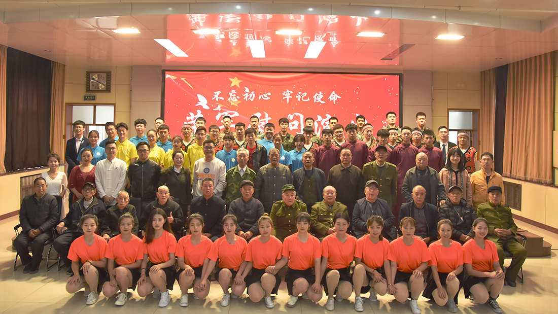 下午3:00慰问演出开始,我院师生们为老革命战士们带来了精心准备的节目。激情四射的啦啦操,中外经典歌曲,蒙古族舞蹈《遥远的路》,精彩的表演赢得了老战士们的阵阵掌声;黄昶玮同学表演的非物质文化遗产《昌黎秧歌》,生动形象,极具感染力;周云翔同学的朗诵《红色家书》,深情的讲述了共产主义先驱钟志申同志在狱中写给哥哥的遗书和无产阶级革命家夏明翰写给妻子郑家钧的遗书,让大家又一次感受了革命先烈对理想信念的执着追求,对党绝对忠诚的赤子之心;《我和我的祖国》诗朗诵《我骄傲,我是中国人》和舞蹈《桃花朵朵开》展现了我院学生们青春昂扬的风貌;我院退役复学的同学们表演的军歌合唱《练为战》、《团结就是力量》让老战士们感慨不已,有位老同志在台下回敬了一个标准的军礼;吴光老师的歌曲《追寻》、李佳老师的二胡演奏将演出活动推向高潮,我院师生的精彩演出不时博得在场老战士的热烈掌声。嘹亮的歌声、优美的旋律、精美的舞蹈将浓浓的敬老情注入到每位老人的心田。