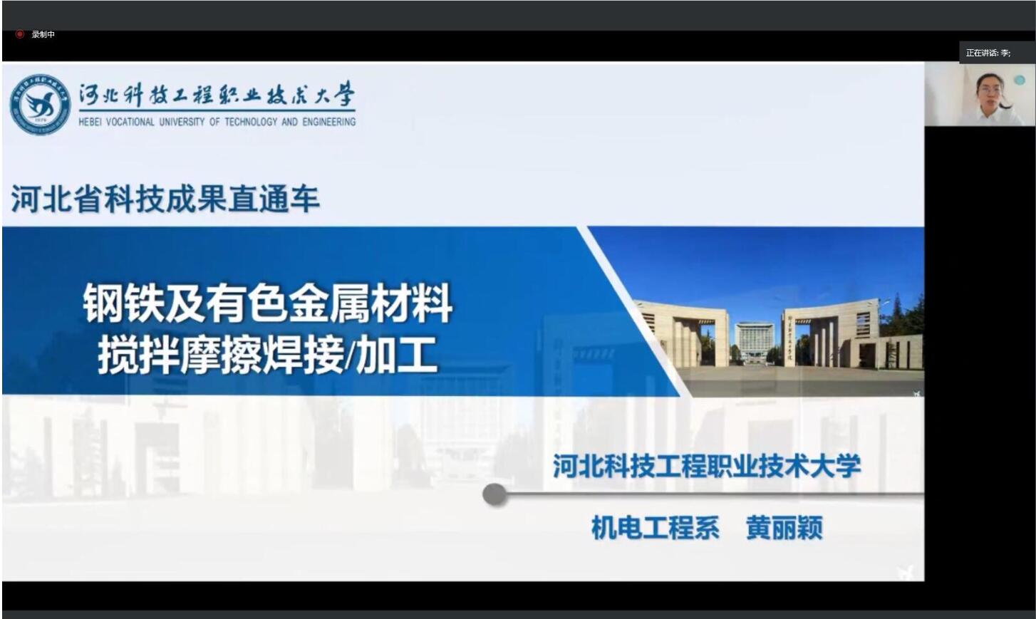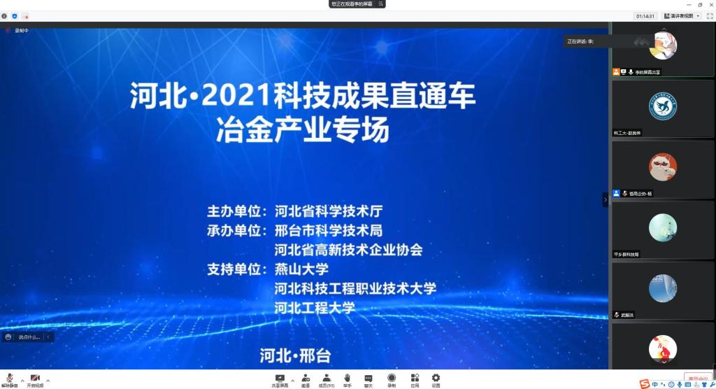 4月21日上午,河北科技成果直通车(冶金产业专场)活动在线上成功举办。活动共有80多个企业单位参加,365官网教师齐增生、黄丽颖应邀在会上推介科技成果。