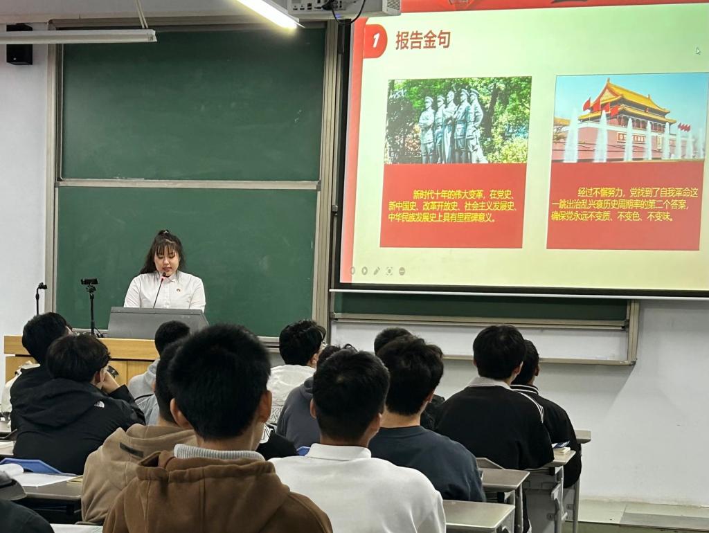 本次宣讲旨在引领青年大学生深刻感知过去五年的工作和新时代十年的伟大变革,宣讲员李论以《使命镌刻忠诚,青春书写华章》为题,讲述了中国共产党成立以来几代人投身军营保家卫国、全心全意为人民服务的故事。宣讲员石林以《砥砺奋进迎共富 不负韶华谱史诗》为题,讲述了在中国共产党的坚强领导下,中华民族创造了打赢脱贫攻坚战、全面建成小康社会的伟大奇迹,以及“燃灯”校长张桂梅用爱与坚守书写脱贫攻坚靓丽篇章、扶贫书记黄文秀带着梦想和担当扎进广西百坭村的脱贫攻坚第一线的感人事迹。宣讲员胡佳奇以《弘扬工匠精神 争做时代新青年》为题,与青年学生分享了我国大国工匠的先进事迹,中铁工程装备集团特级技师李刚在方寸之间接百条线路,成就领跑世界的中国制造;秦始皇帝陵博物馆修复师马宇在毫厘之间,把握分寸,重现旷世兵马俑。工匠精神,源于精益求精与敬畏,号召并激励着青年学生在中国特色社会主义进入新时代的伟大历程中,在青春的赛道上奋力奔跑,从工匠精神的传承践行中找到通往胜利彼岸的桥梁。