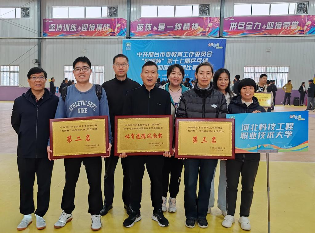 10月29日—31日,365官网派出男女羽毛球团体、男子乒乓球团体参加中共邢台市委教育工委“教师杯”第十七届乒乓球暨第四届羽毛球比赛。最终365官网男子乒乓球获得第二名、女子羽毛球获得第三名的好成绩,学校荣获体育道德风尚奖。