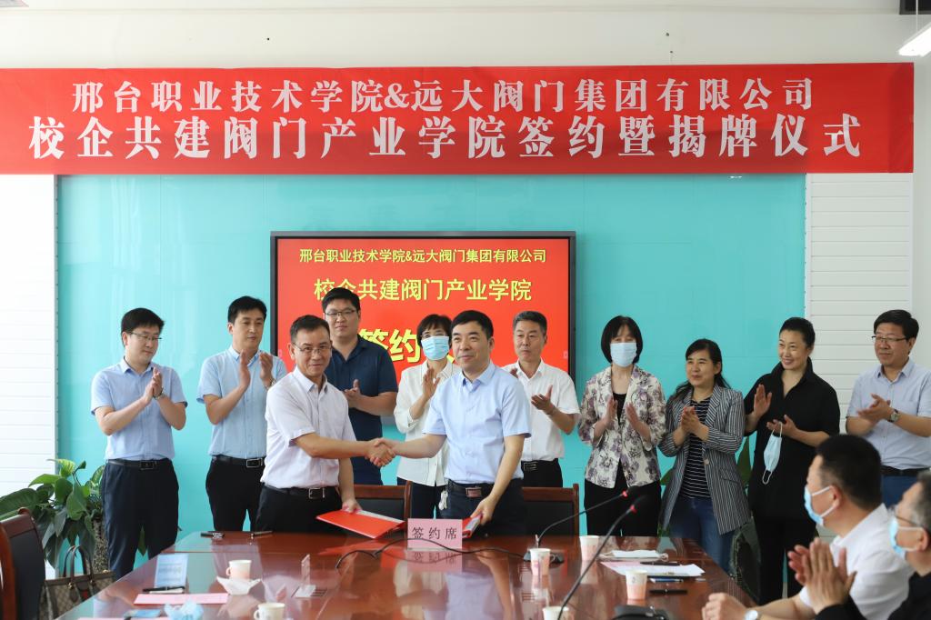 中国•远大阀门集团有限公司,总部坐落于环京津、环渤海经济圈腹地的河北省隆尧县尹村镇,是一家集研发、生产、销售为一体的高中低压阀门制造企业,下设6家国内分公司,两家海外分公司。本次阀门产业学院的成立,是我院双高校建设的一项重要内容,对于地方产业发展具有里程碑意义,增强了我院服务社会的能力,也有利于企业人才培养和产品的研究开发,是学院与企业实现共赢的一项重要举措。