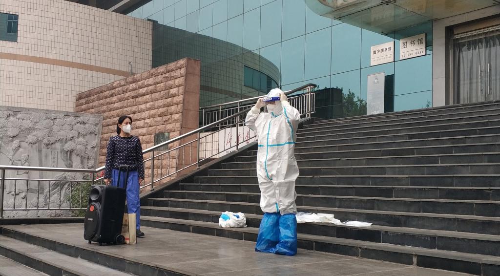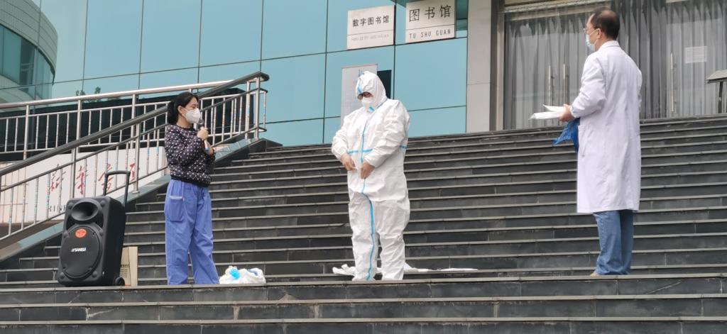 华北医疗健康集团邢台总医院高玲护士长受邀对师生进行了专业培训。她以通俗易懂的语言,介绍了当前校园内外的疫情形势和防控目标,校园大学生疫情防控特点,以及如果校园出现疫情,师生志愿者进行核酸采样时的操作规范和如何做好自身防护等几个方面的内容。在培训现场,高玲护士长示范了“防护用品穿脱流程”以及新冠咽拭子采样关键步骤注意事项,详细讲解每一步操作中的注意事项。师生代表积极参加了现场演练。