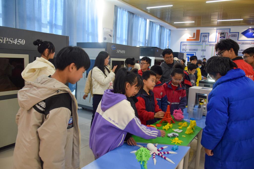 仪式结束后,志愿者与项目服务学生、家长走进机电工程系3D打印特色教室、无人机应用教室进行参观、学习。随后在学校操场开展游戏互动。
