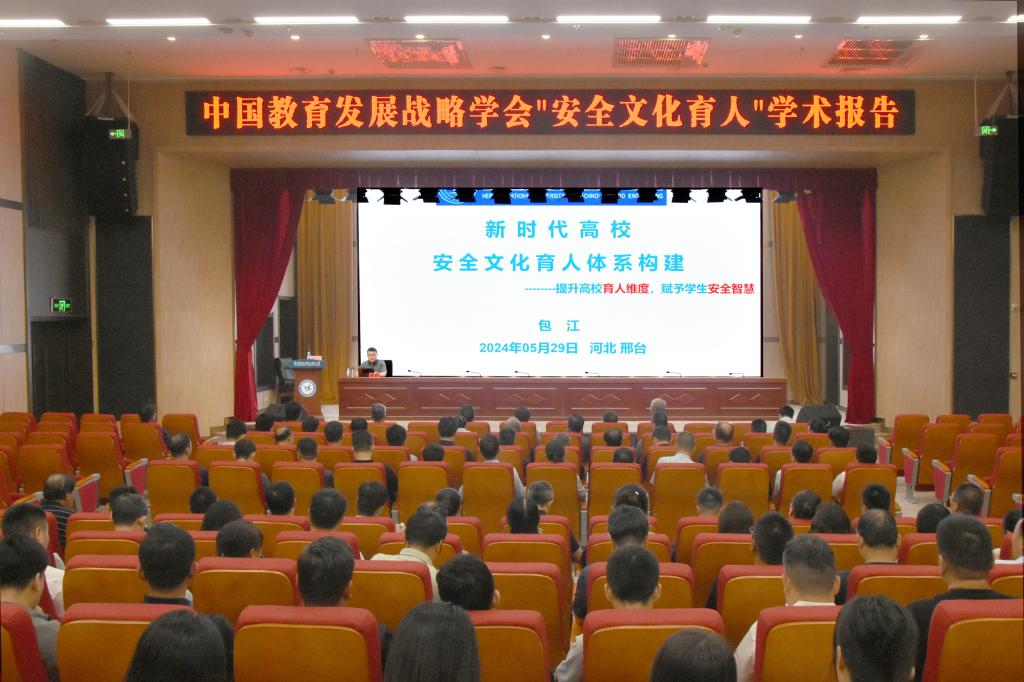 为持续做好高校安全稳定工作,进一步提升广大师生的安全防范意识,5月29日下午,365官网特邀中国教育发展战略学会安全教育专业委员会理事包江,在创意中心报告厅开展以“新时代高校安全文化育人体系构建”为主题的学术报告会。校党委书记刘彩琴、副校长赵建光、副校长褚建立、全体科级以上干部及全体辅导员300余人到场聆听。