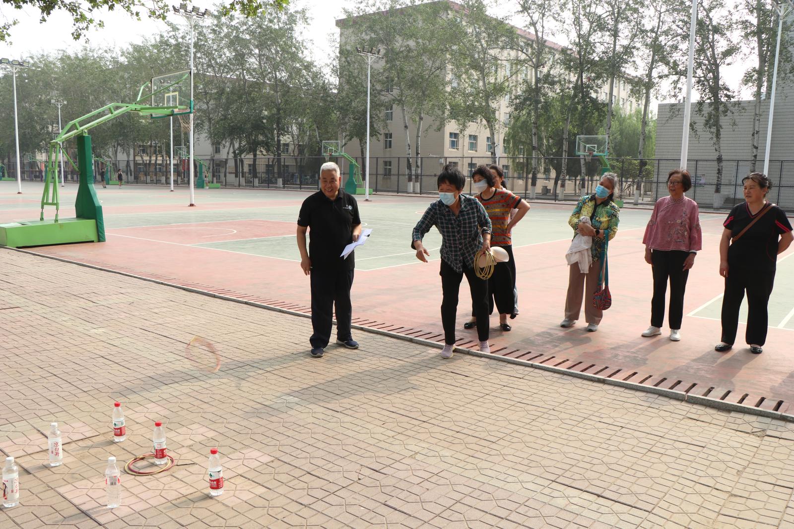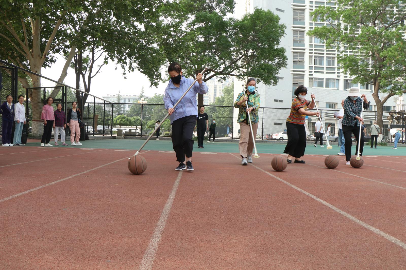 运动会结合老年人的年龄、身体状况,“量身定制”了“赶猪”、套圈、飞镖、丢沙包等运动项目,既安全有趣又能锻炼手眼协调。“赶猪”项目,老同志们手拿道具杆子赶着篮球走,你追我赶,奋力争先;“套圈”场地手起圈旋,瓶套入圈;飞镖现场手眼合一,靶心在握;丢沙包高抛稳落,抛出希望,收获快乐。老同志们银发飘飘,欢声笑语,这一刻好像忘记了年龄,也引来同学们的驻足观看,加油喝彩。