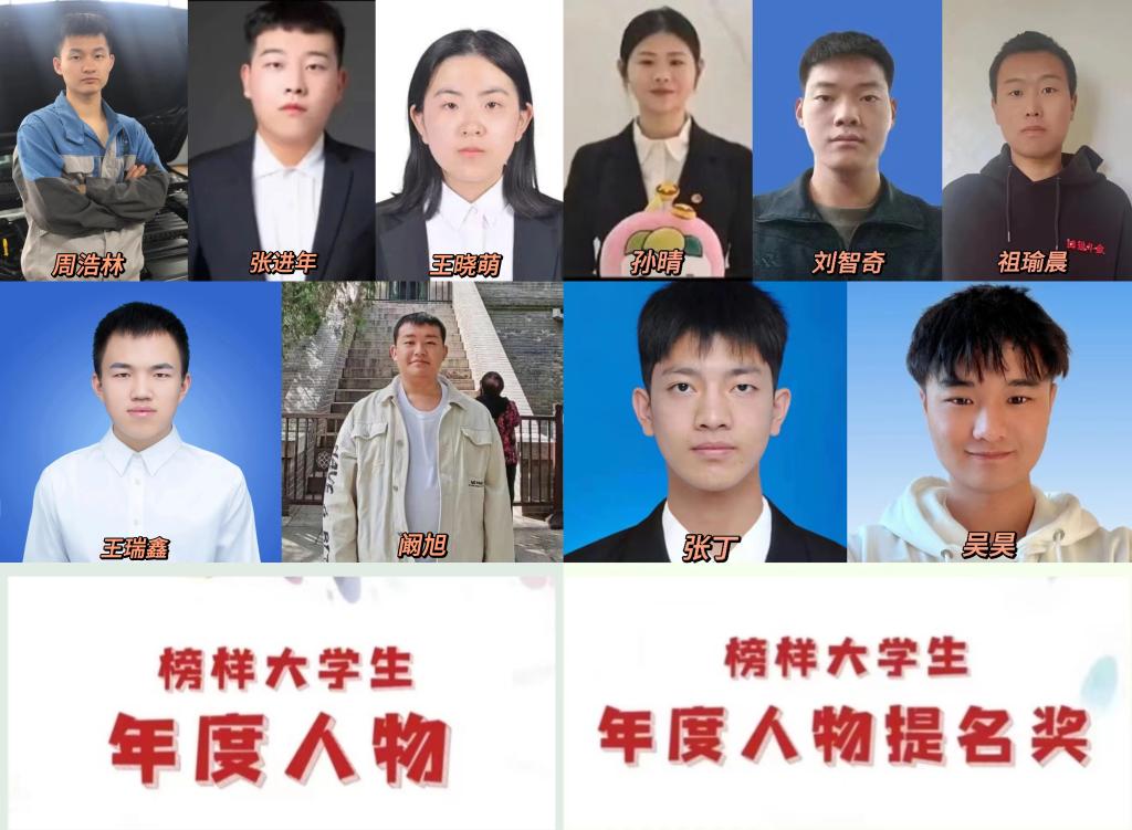 评选活动于2023年初启动,面向全校寻访拥有为国为民家国情怀、勤学刻苦为学态度、开拓创新求知精神的学生,在学术成就、社会服务、创新创业、个人品德、领导能力、团队合作、孝老爱亲等方面有突出表现的学生。经过层层筛选、系部推荐、学校综合评审、网络投票、公示等环节,最终王瑞鑫、阚旭、周浩林、张进年、王晓萌五位同学获得2022-2023年河北科工大榜样大学生年度人物奖;刘智奇、吴昊、孙晴、祖瑜晨、张丁五位同学获得2022-2023年河北科工大榜样大学生年度人物提名奖。