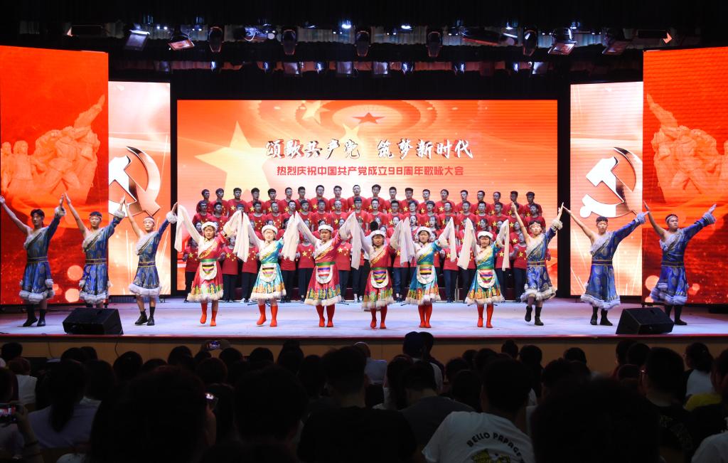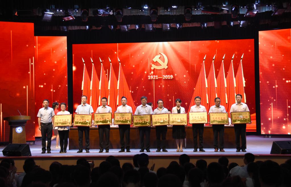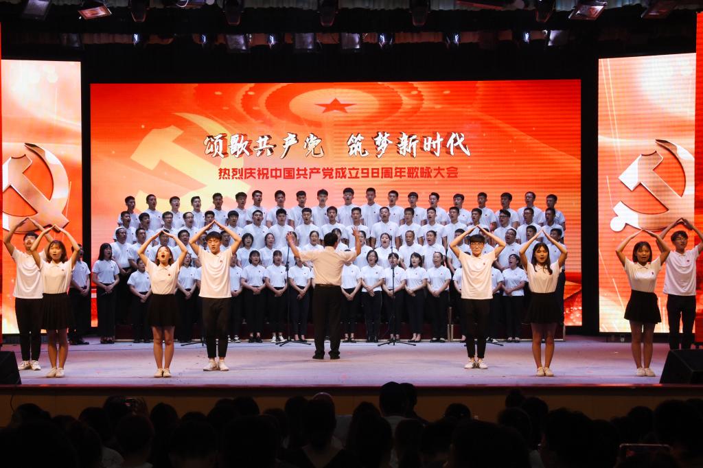 为庆祝中国共产党成立98周年和中华人民共和国成立70周年,讴歌改革开放以来在党的领导下所取得的辉煌成就,推进“不忘初心,牢记使命”主题教育深入开展,6月28日下午,学院在红星礼堂隆重举行纪念中国共产党成立98周年表彰暨歌咏大会。学院领导、全体教职员工及学生代表近2000人参加了大会。会议由院长马东霄主持。