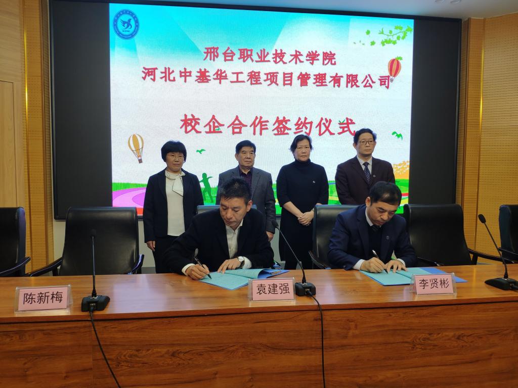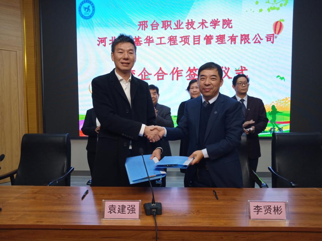 10月18日下午,我院与河北中基华工程项目管理有限公司在图书馆报告厅举行校企合作签约仪式。中基华公司董事长袁建强、学院副院长李贤彬、建筑工程系主任许光、书记刘志忠等参加仪式。仪式由刘志忠书记主持。