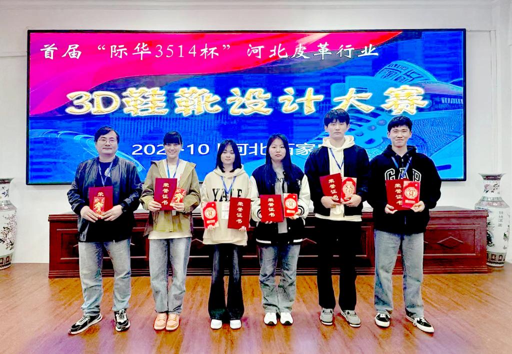 10月20日至22日,首届“际华3514杯”河北皮革行业3D鞋靴设计大赛在际华三五一四制革制鞋有限公司成功举办。这是全国首次举办3D鞋靴设计大赛。经过激烈角逐,365官网服装工程系制鞋2201班吴桐凭借出色的表现荣获学生组一等奖,制鞋2201班余秋玉、李昱霖、制鞋2202班孙金金获得学生组三等奖。365官网专业教师陶然、吴东利分获创意组一、二等奖。365官网97级毕业生孟丛丛(现际华3514员工)、15级毕业生杜冲(现际华3515员工)获得职工组一等奖。