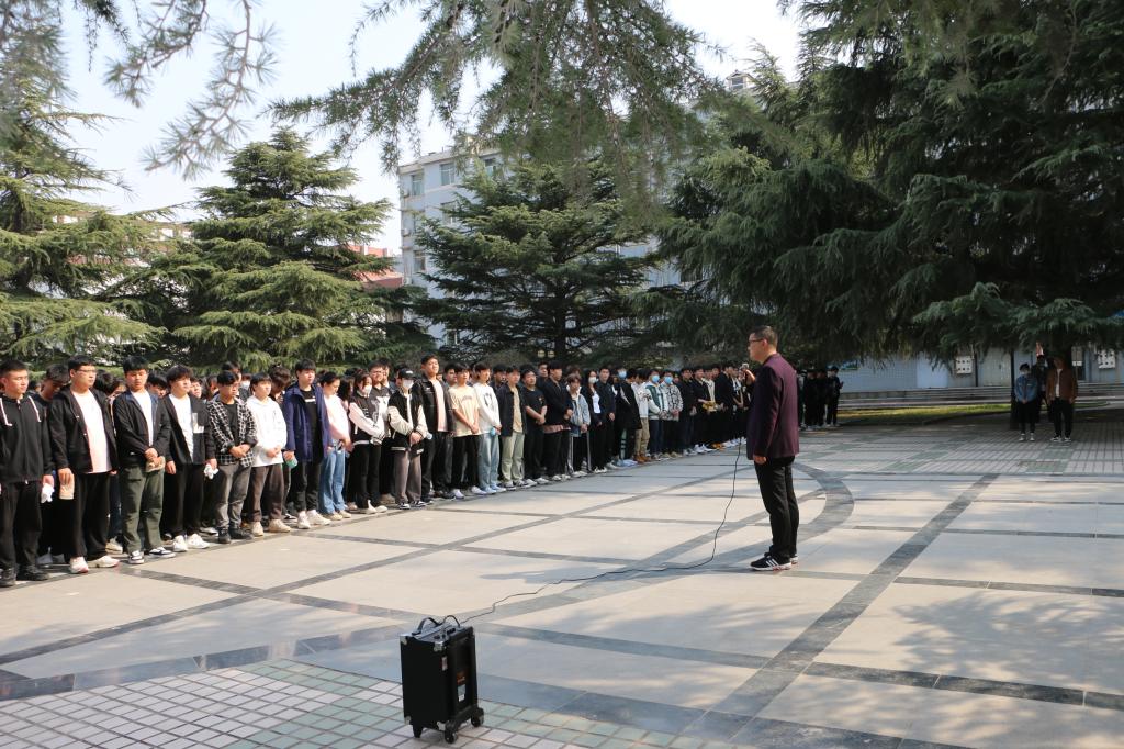 集合完毕后,服装工程系党总支书记辛东升作安全教育讲话。他希望同学们要从思想上高度重视,明确平时宿舍和日常生活当中防火、防电的重要性,在遇到地震、火灾等突发灾害时,大家应冷静有序逃生,避免踩踏等二次伤害事件发生。