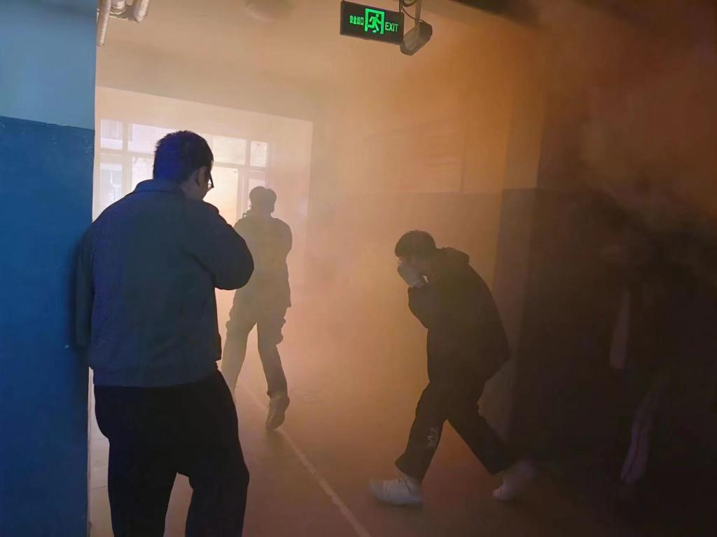 下午3:00,随着急促的火警警报声拉响和模拟火灾烟雾的燃起、弥漫,消防逃生演练正式开始。1号楼和2号楼男女宿舍楼分别由一楼开始撤离,辅导员老师和各楼层引导员引导学生有序撤离,同学们全程用湿毛巾捂好口鼻,听从指挥,以宿舍为单位有条不紊地撤离至红星礼堂前小广场集合。