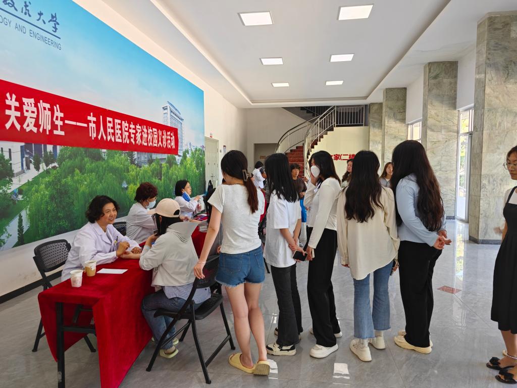 活动当天,市人民医院体检中心主任秦俊霞带领由心内科、神经内科、呼吸内科、内分泌科、中医科、皮肤科、理疗科等多个学科的主任医师组成的专家团队,齐聚红星礼堂大厅。学校领导在现场向专家的到来表示欢迎。